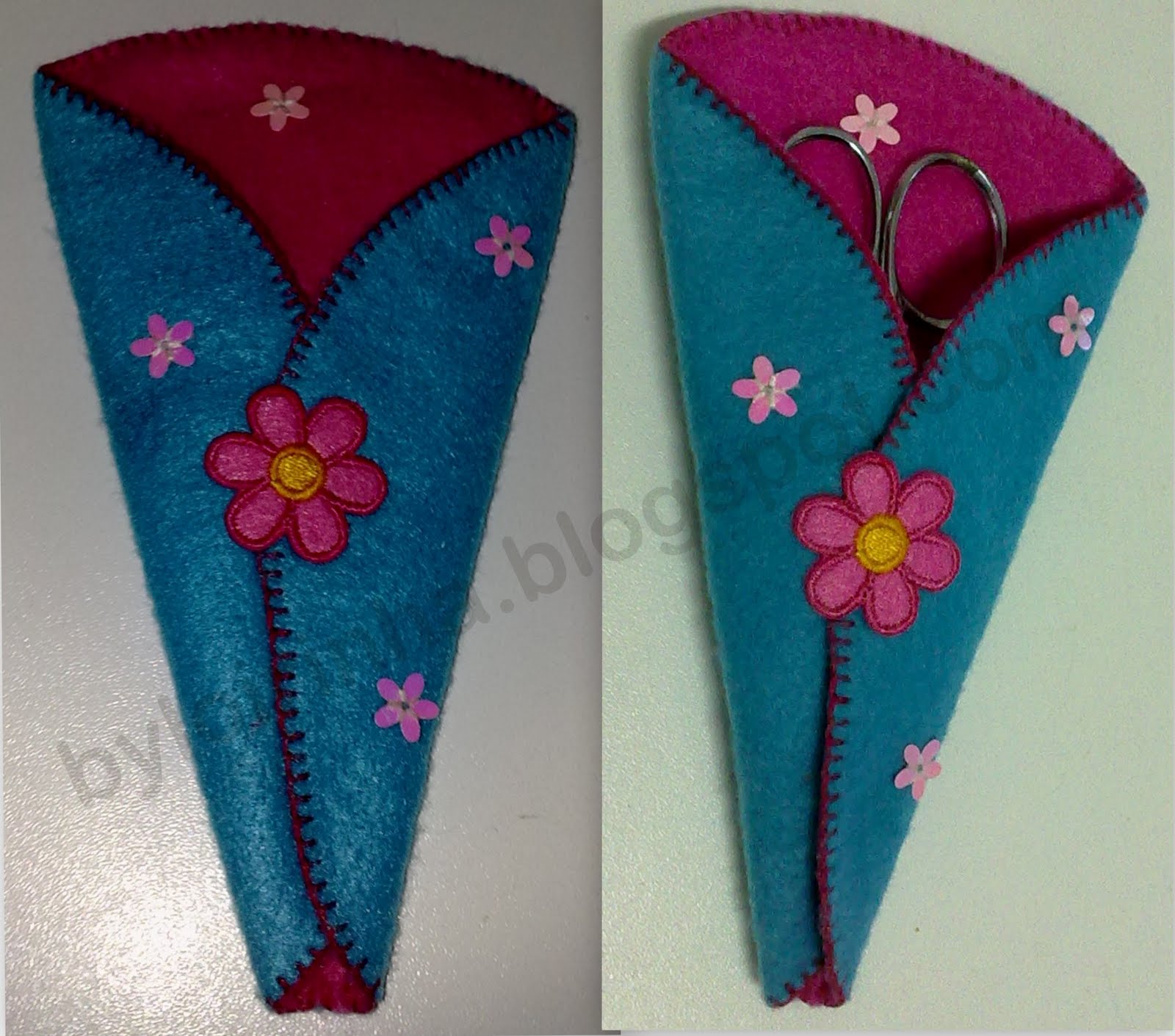 Costuma dizer-se que não há duas sem três... Aqui fica o 3º desafio em que participei no fórum Decoupage & Companhia - Deafio de Feltro- Porta-Tesouras.